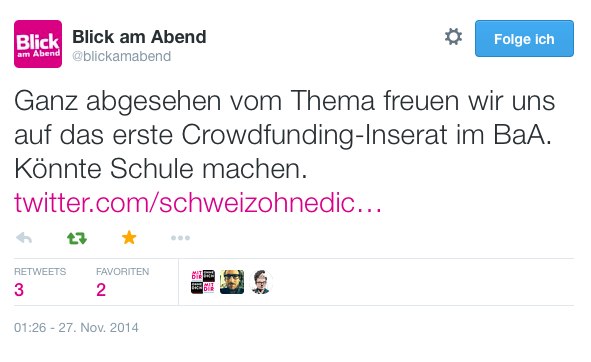 Daniel: Weitere Praxis-Tipps gibt es auch in unserem Workshop «Crowdfunding: Finanzierung mit Schneeballeffekt», der im Rahmen des Campaign Summit Switzerland am Donnerstag 12. März von 17.00 bis 19.00 Uhr stattfindet. Für Interessierte haben wir noch fünf Gästetickets. Meldet euch bitte bei mir.