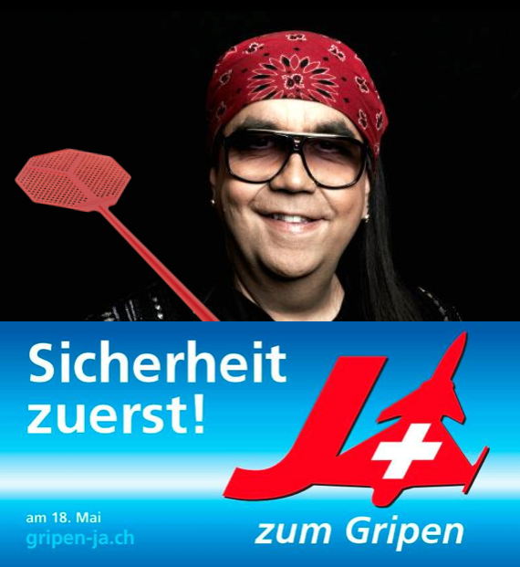 Kurz vor der Landung haben wir uns mit «Panik-Plakaten» in die Gripen-Abstimmung eingemischt. «Wir» sind ein bunter Mix von Leuten, denen es offensichtlich Spass macht, Abstimmungsplakate am Laufmeter zu manipulieren und das angebliche Sicherheitsbedürfnis der Schweiz zu karikieren.