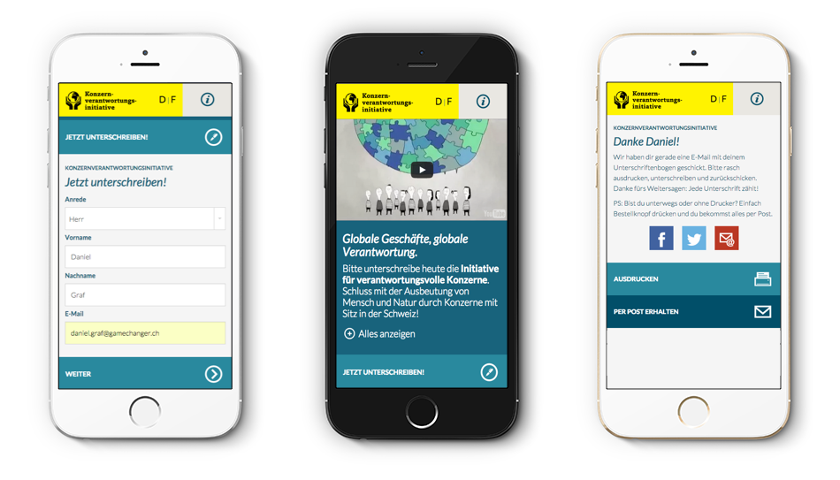 Viele Organisationen, Parteien und NGO wie Amnesty International verfügen heute über eine breite Online-Kontaktbasis und auch im Netz über treue AktivistInnen, die beispielsweise regelmässig Online-Petitionen unterstützen. Dieses Potenzial wollten wir nutzen. Aus der Praxis ist zudem bekannt, dass – bedingt durch den Aufwand – nur wenige Menschen ein PDF herunterladen, es ausfüllen und zurückschicken. Das gilt insbesondere dann, wenn sie unterwegs sind und die Informationen auf dem Smartphone erhalten.